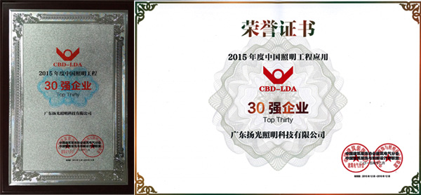 揚光照明榮獲“2015年度中國照明工程30強企業”稱號