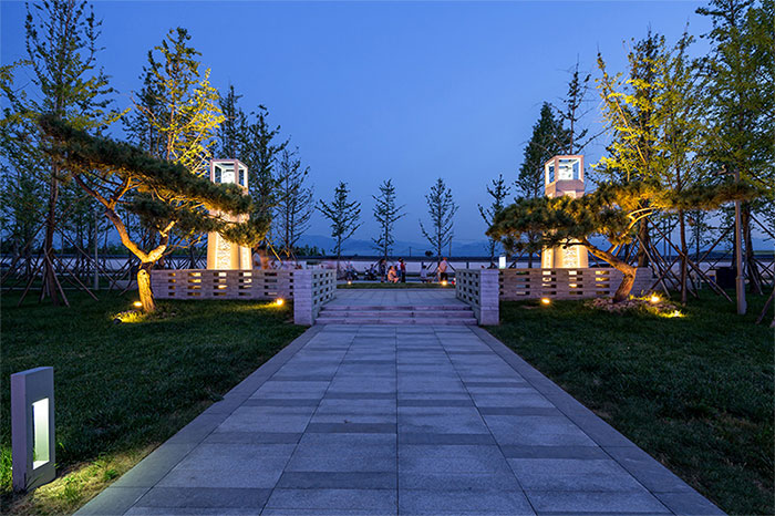 四、廣場道路燈光是構成流暢的旋律曲線的主要部分。廣場中的道路有很多類型,不同的道路對于燈光的要求也不近相似,根據安全照明需要,營造出幽靜、祥和的氛圍,使其融入柔和的光線中。