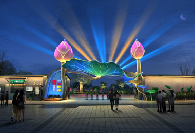 - 使用燈光技術豐富其色彩,多彩的空中激光束打造了入口環境的燈光效果,吸引了來自周圍地區的游客,提高公園的形象并在夜間提高其經濟效益。